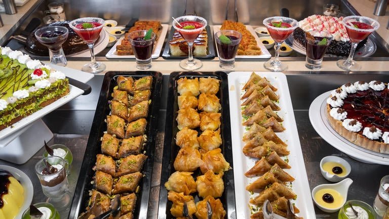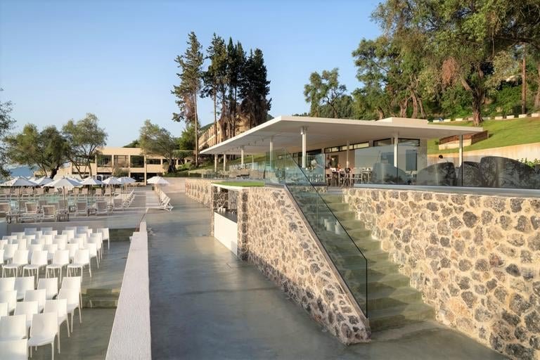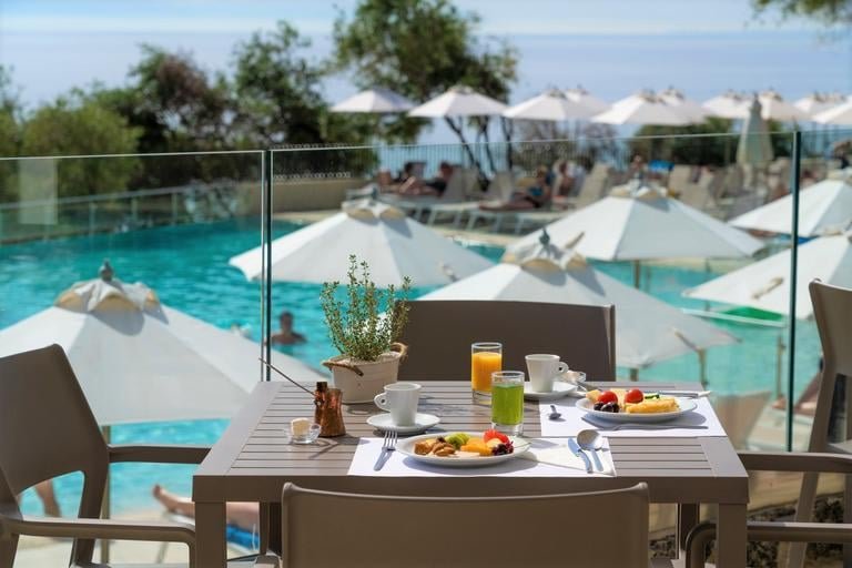 Dophin főétterem – büfé jellegű, görög és nemzetközi ételek, La Spiaggia tengerparti étterem - büfé jellegű, olasz konyha. Paralia étterem a tengerparton - à la carte, görög ételek Az éttermekben gyermekülések és menük állnak rendelkezésre. A vacsora alatt kötelező a megfelelő öltözet. (uraknak - hosszú nadrág). 5 bár: lobby bár, strand bár, medence bár, Lagoon Snack bár, Relax bár (19 óra után felár ellenében).