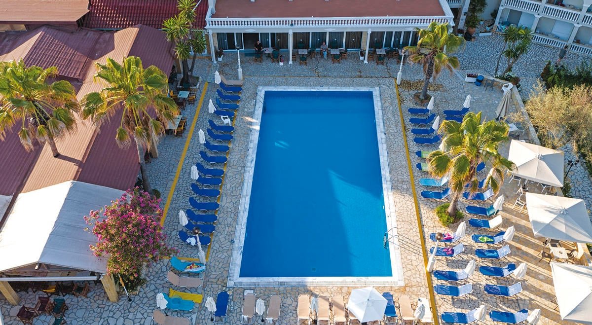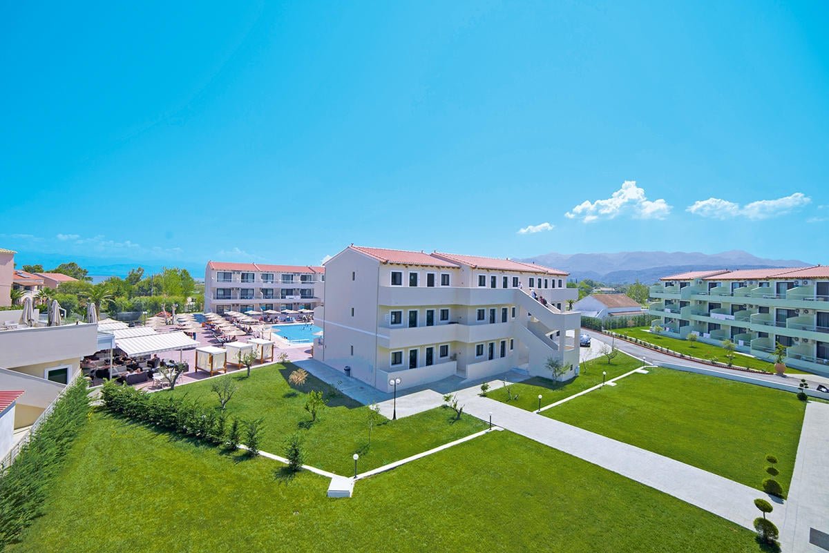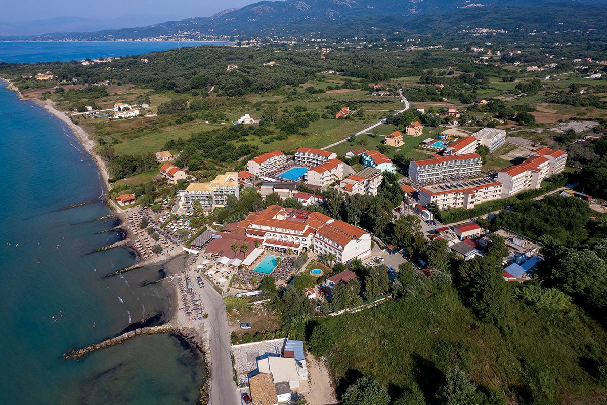 A több épületből álló szállodakomplexum a sziget északi részén található, kb. 3 km-re Roda üdülőhelytől, (ingyenes szállodabusz), kb. 6 km-re Acharavitól, kb. 36 km-re a repülőtértől, üzletek és éttermek kb. 150 m-re a szállodától.