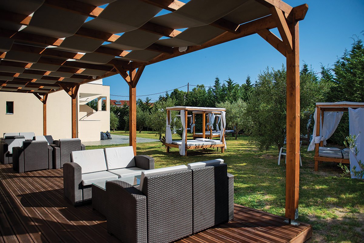 Asztalitenisz, röplabda, játszótér, hetente egyszer élőzene, masszázs, vízi sportok, vízicsúszdák.