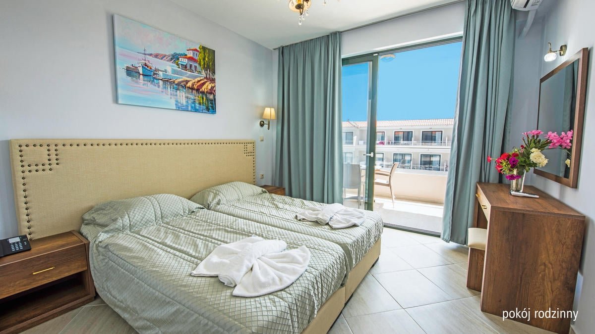 Családi szobák akár 4 fő részére, (új épület) saját fürdőszobával (fürdőszoba, hajszárító, WC), légkondicionálóval, SAT/TV-vel, széffel, hűtőszekrénnyel; erkéllyel vagy terasszal.  2 légteresek, a fő hálószobában két különálló ággyal, másik helyiségben egy különálló ágy és egy kanapéágy, melyeket egy ajtó köt össze.